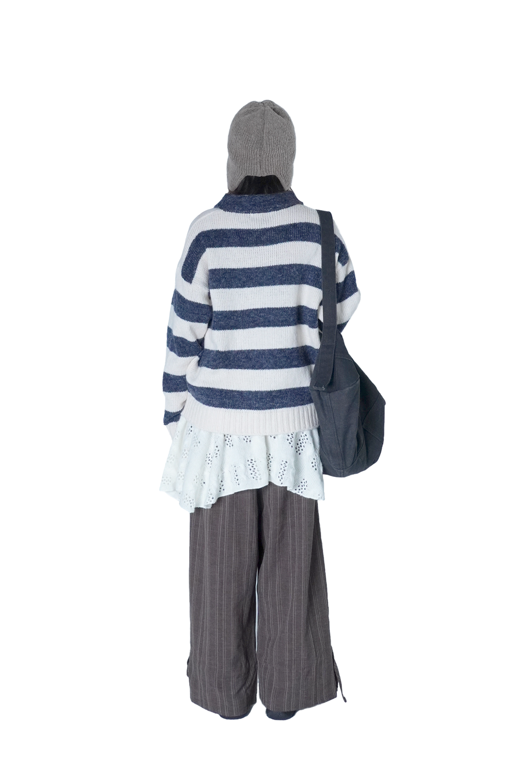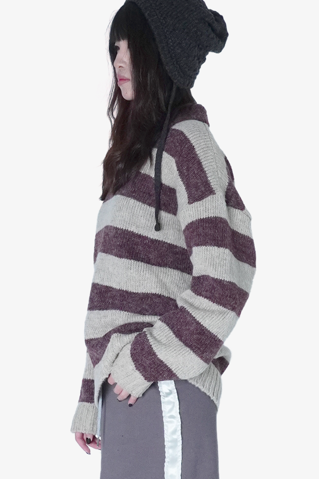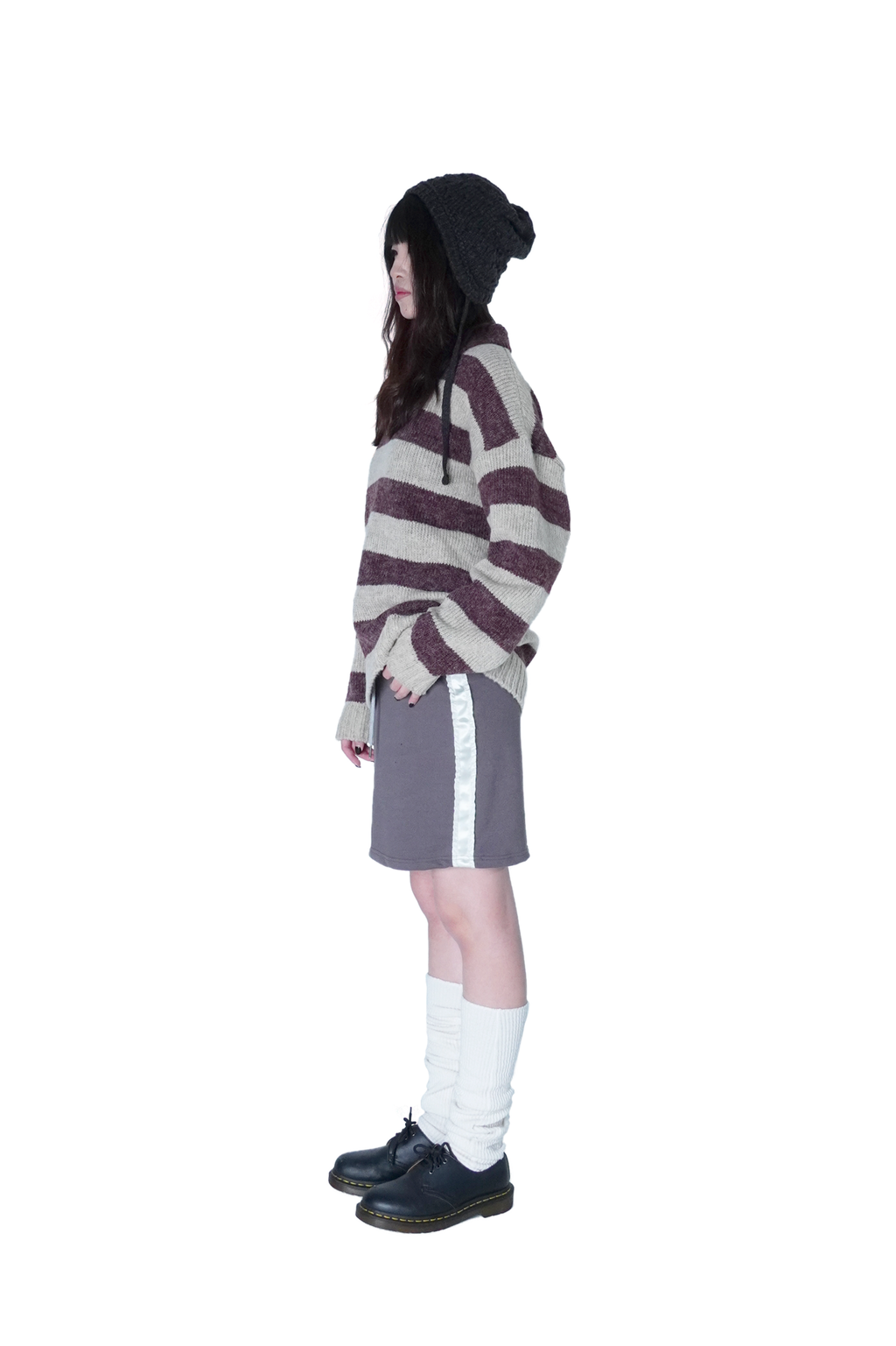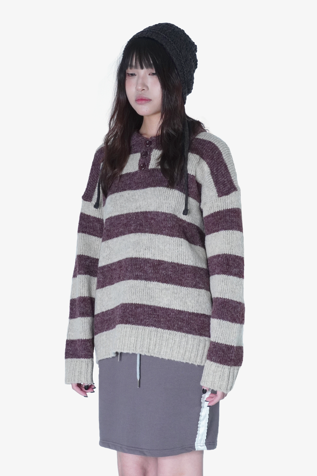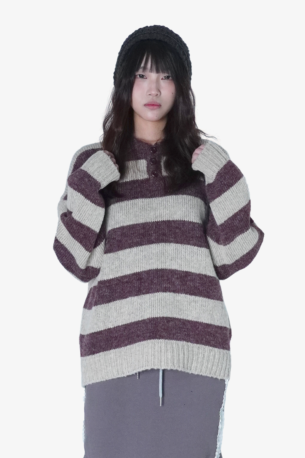 橫條紋針織翻領毛衣(Unisex)