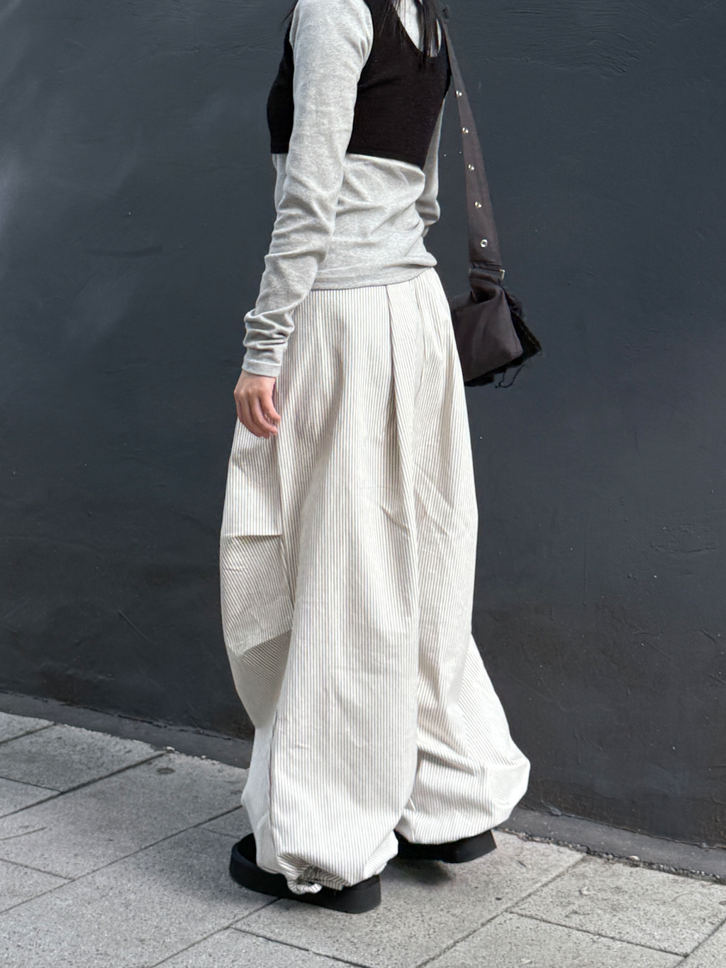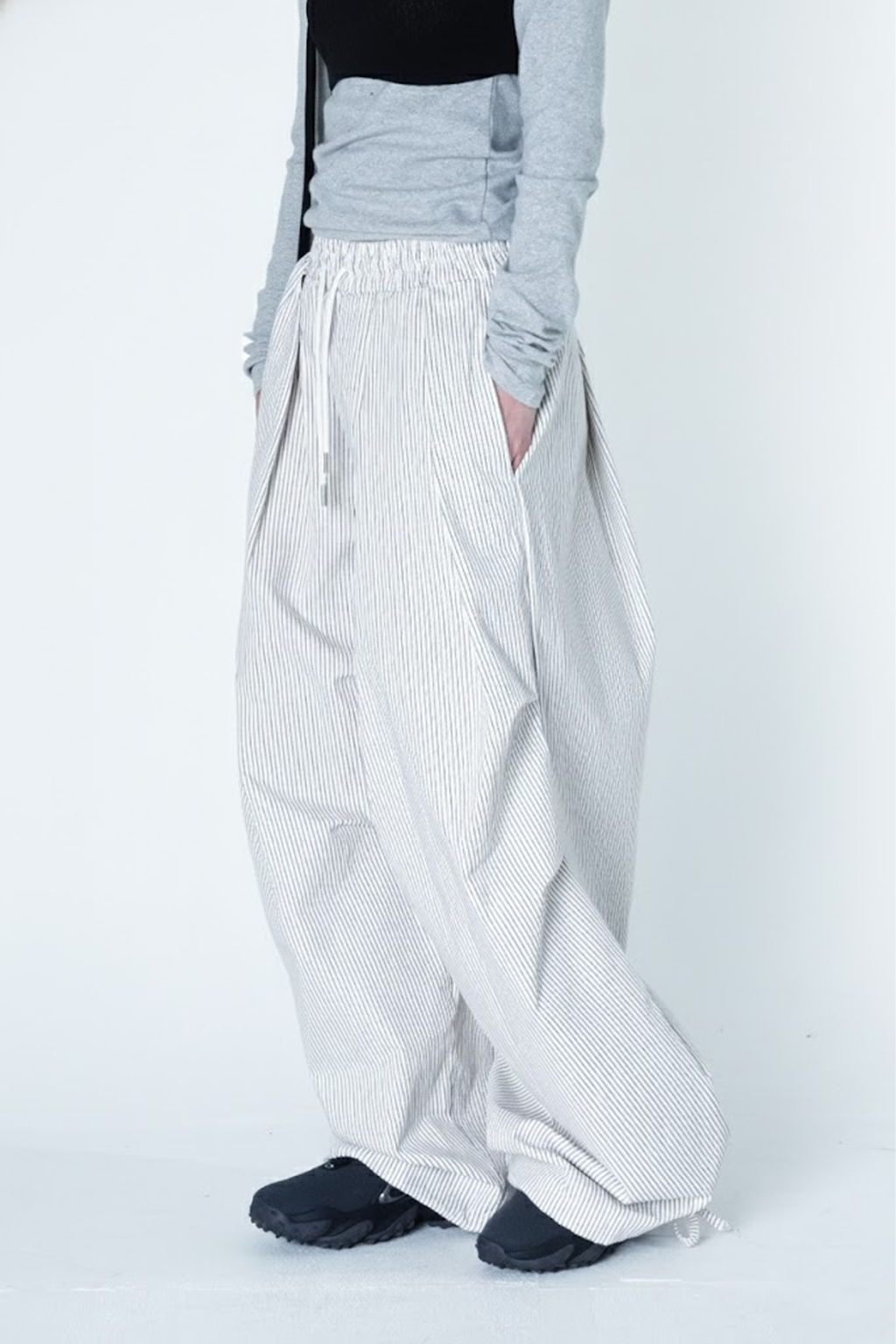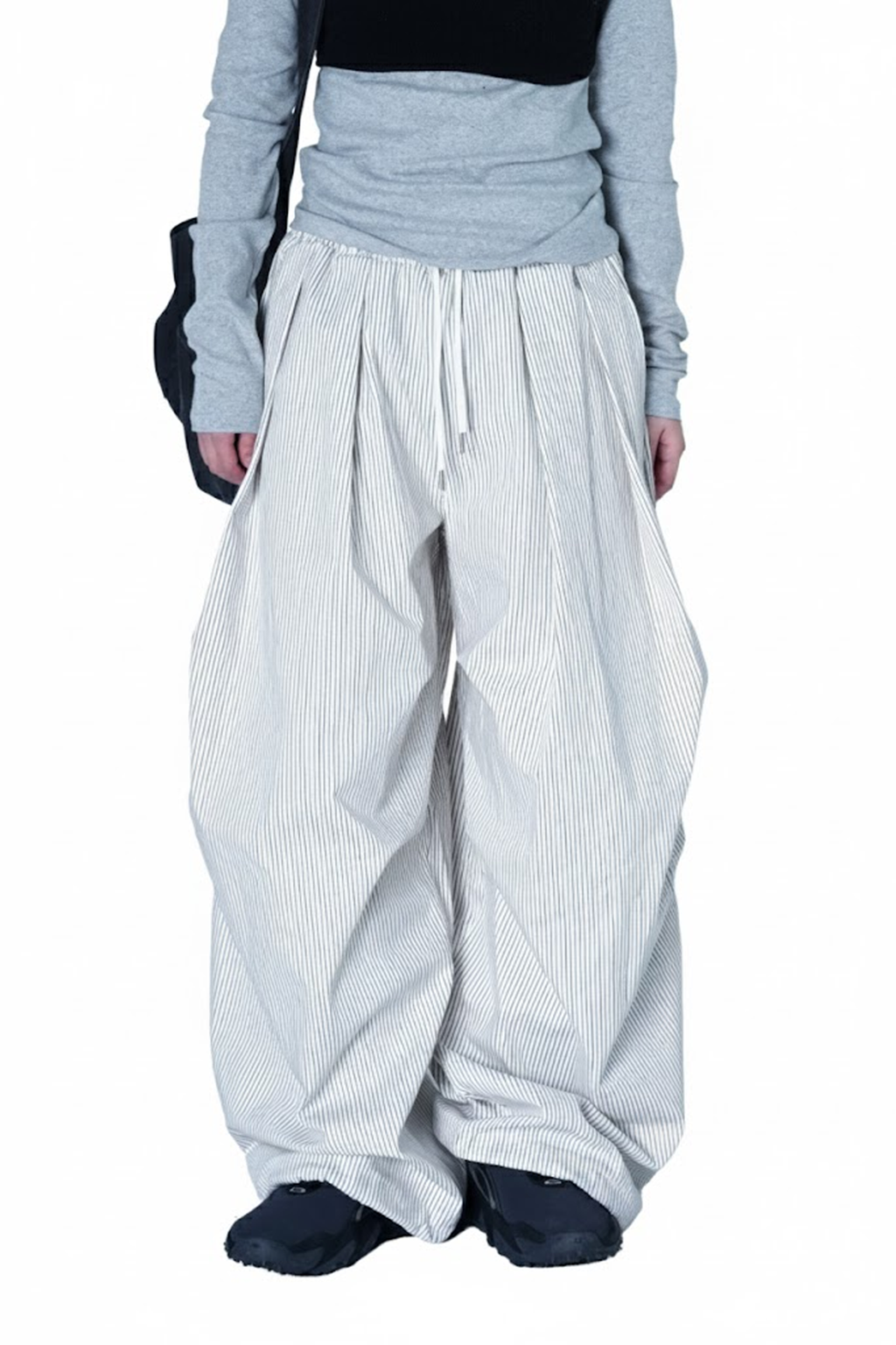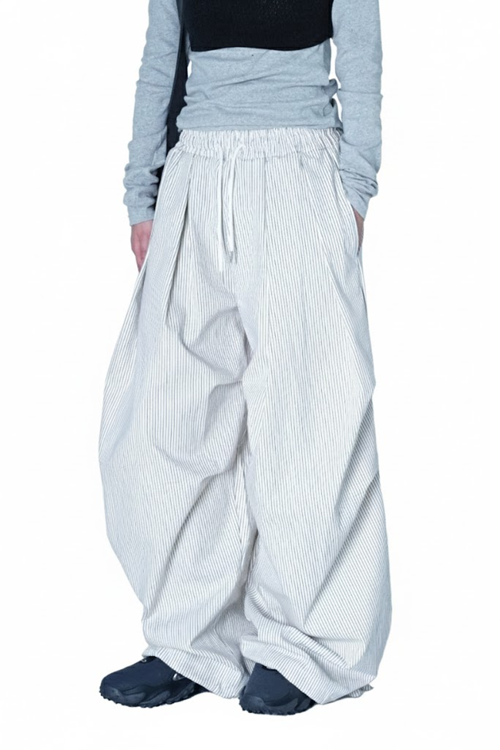 褶皺條紋寬版氣球褲(Unisex)