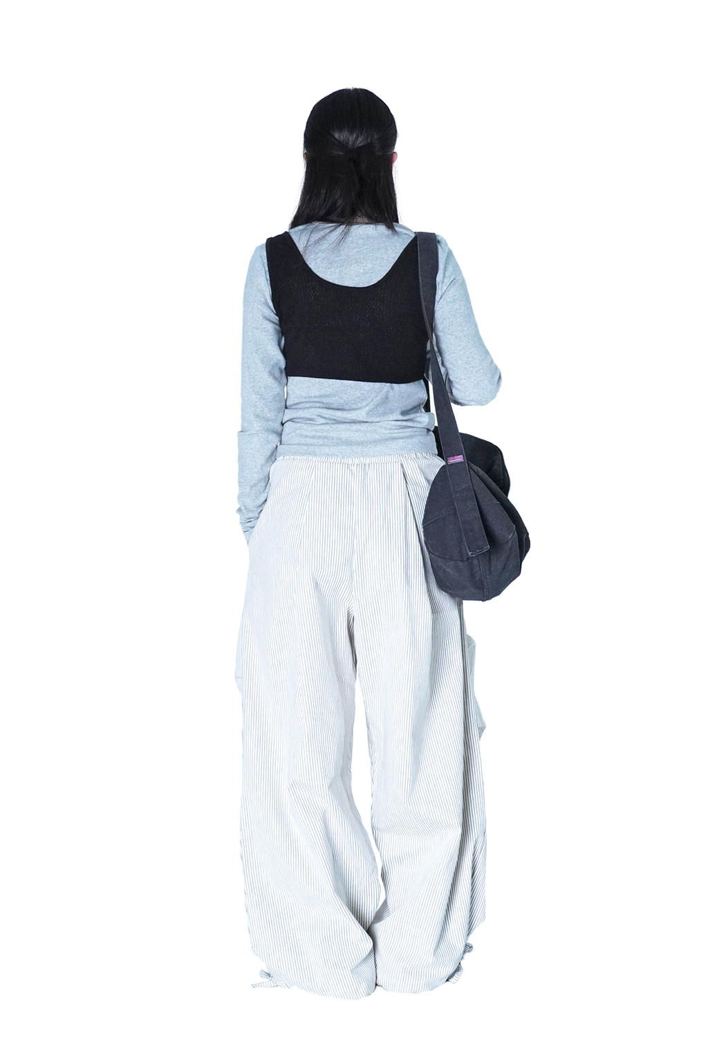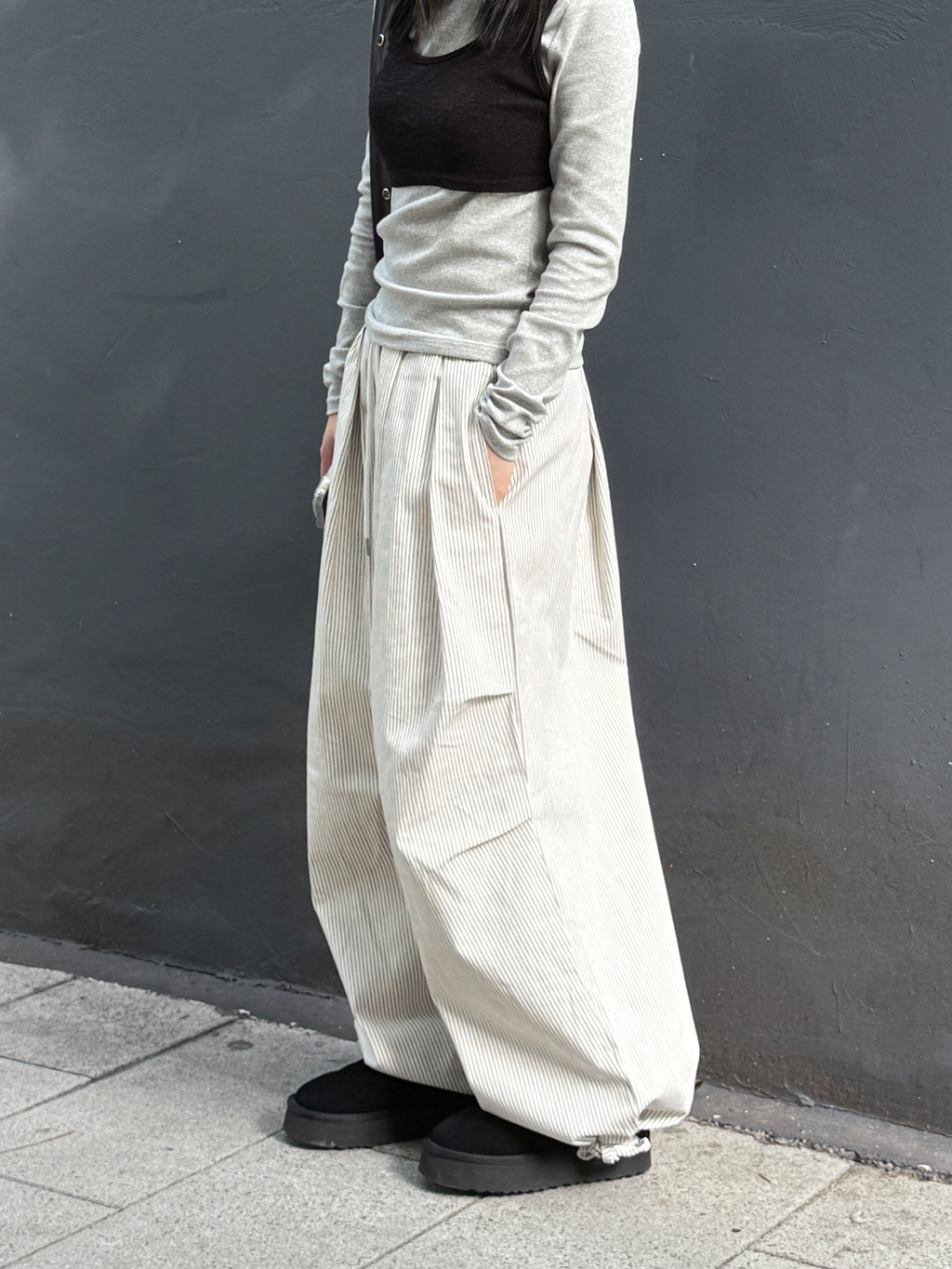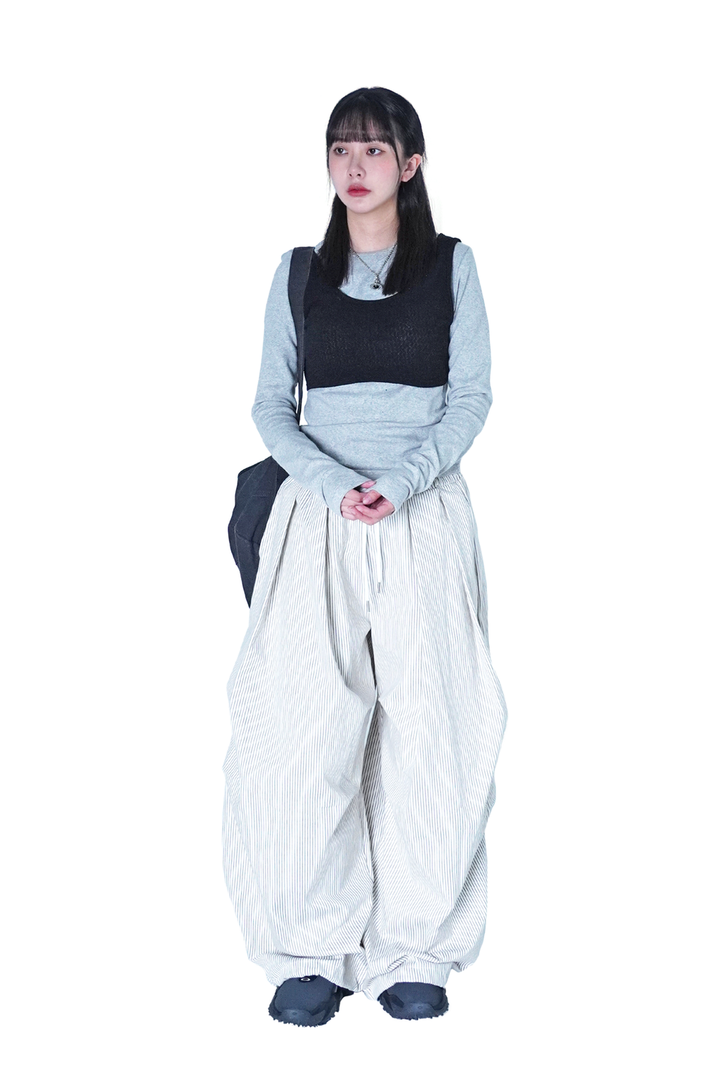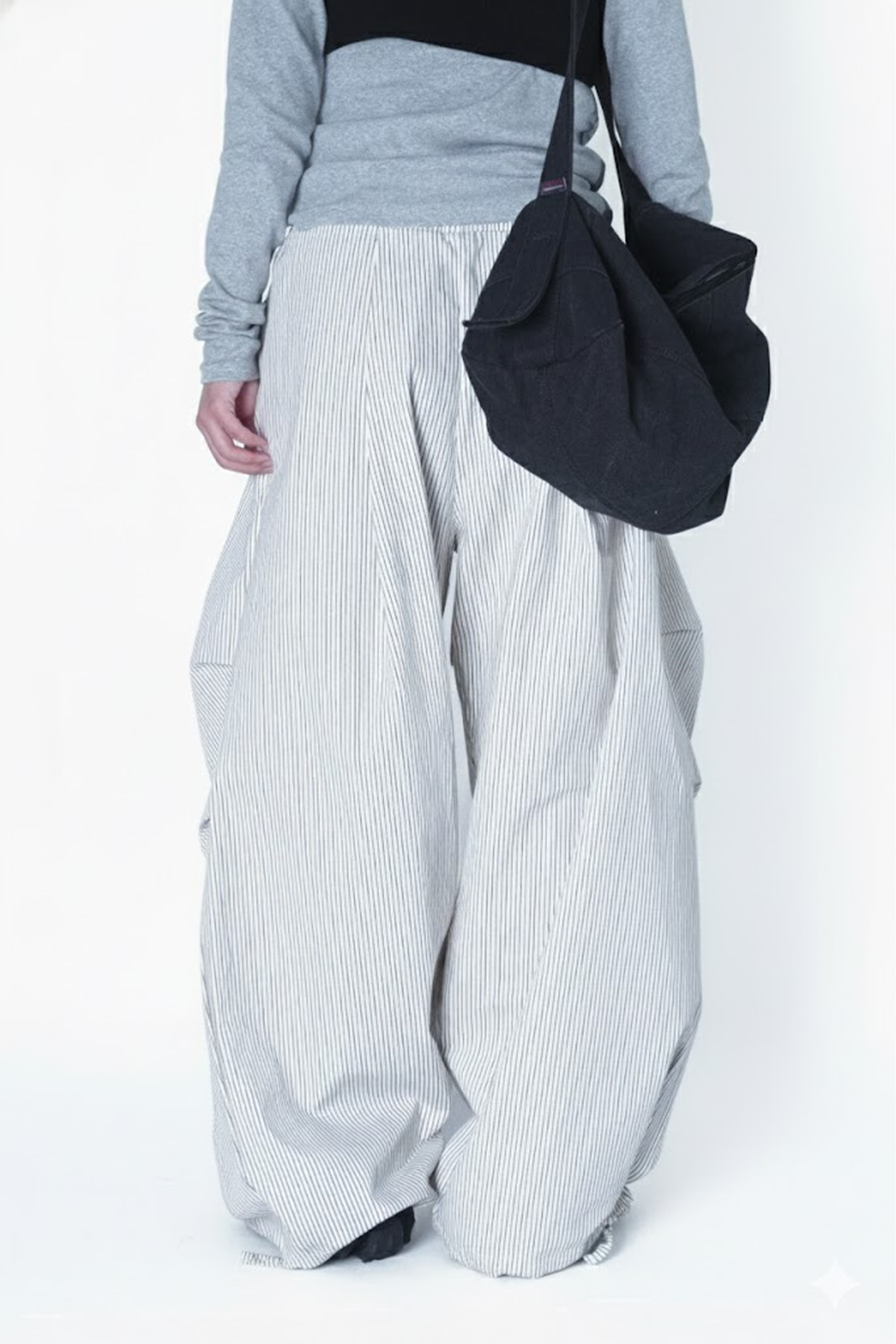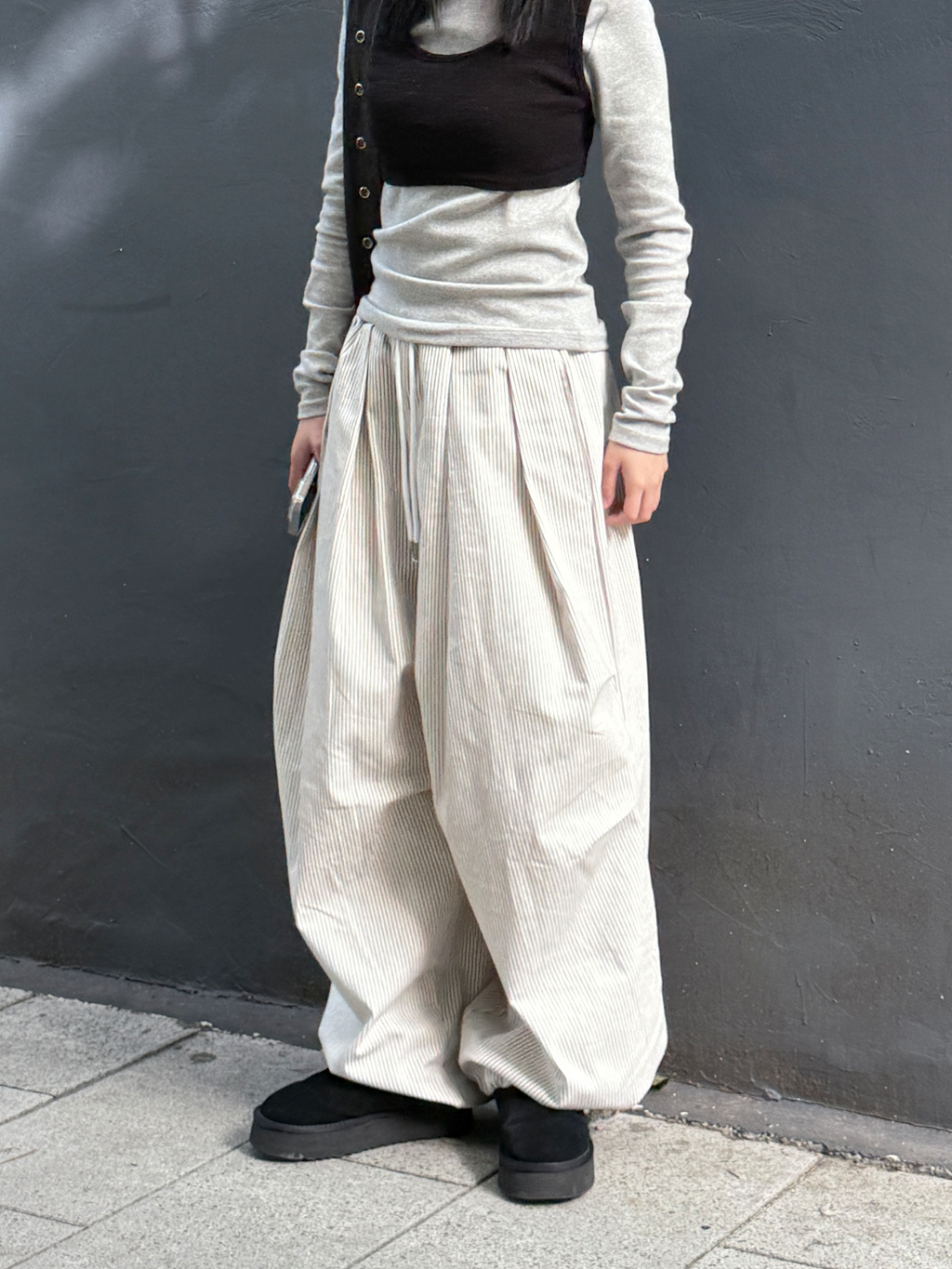 褶皺條紋寬版氣球褲(Unisex)