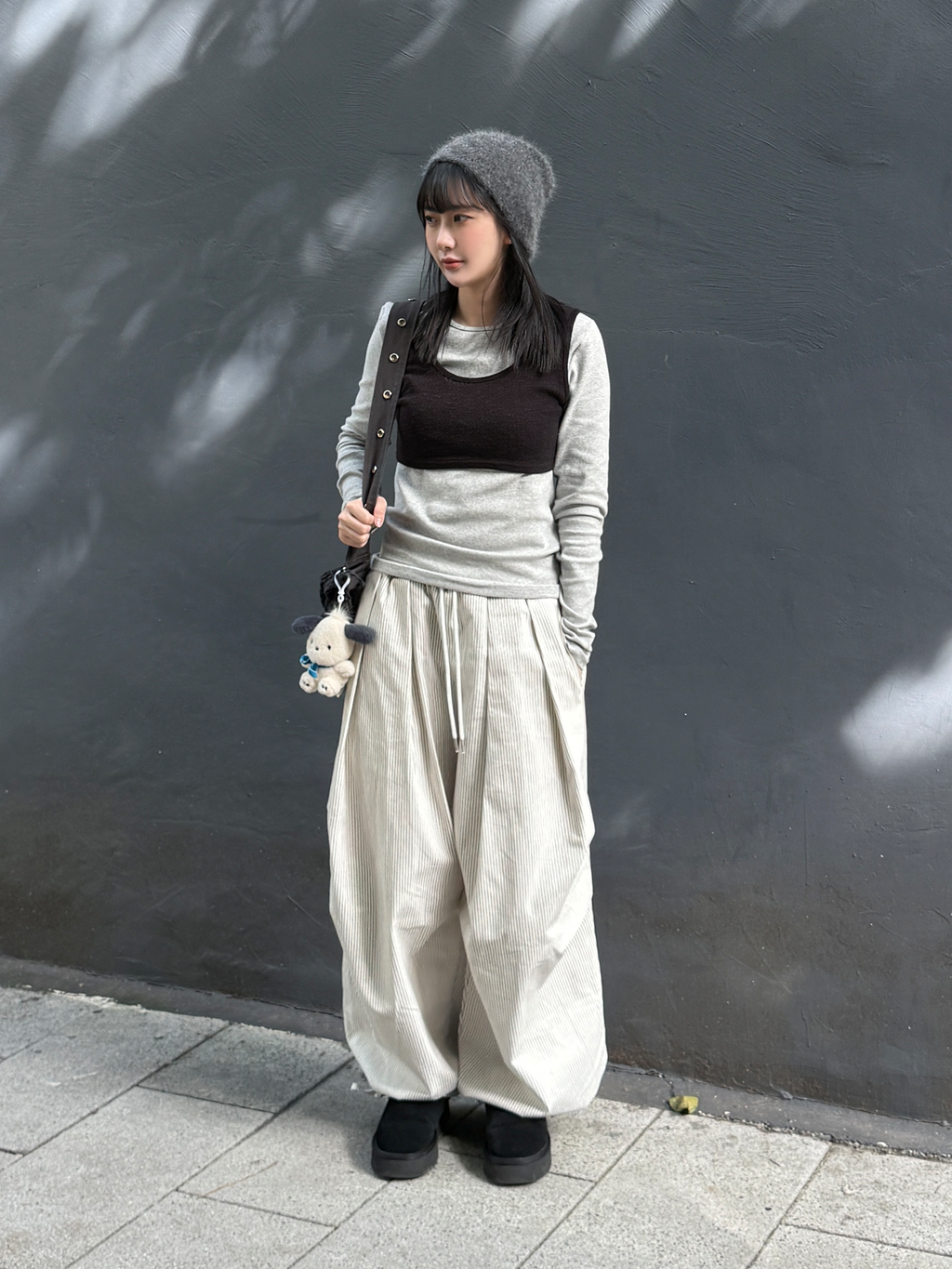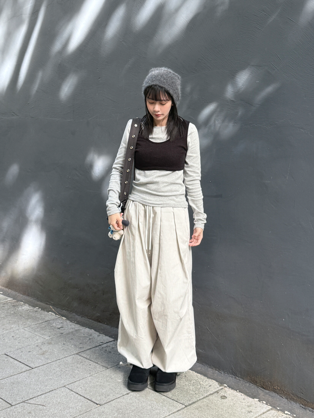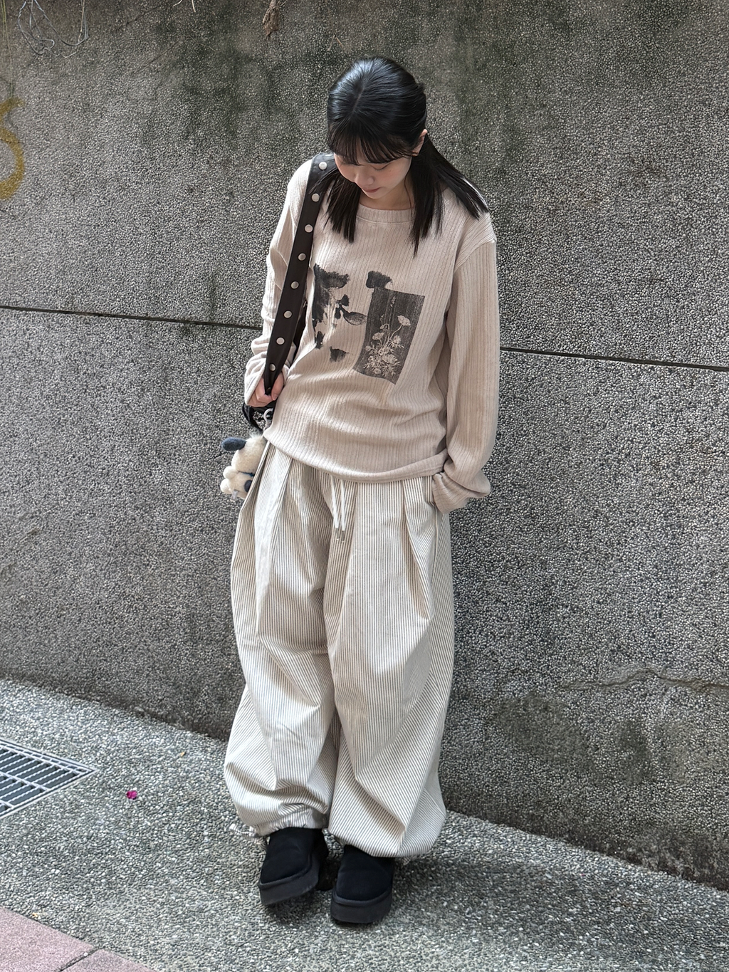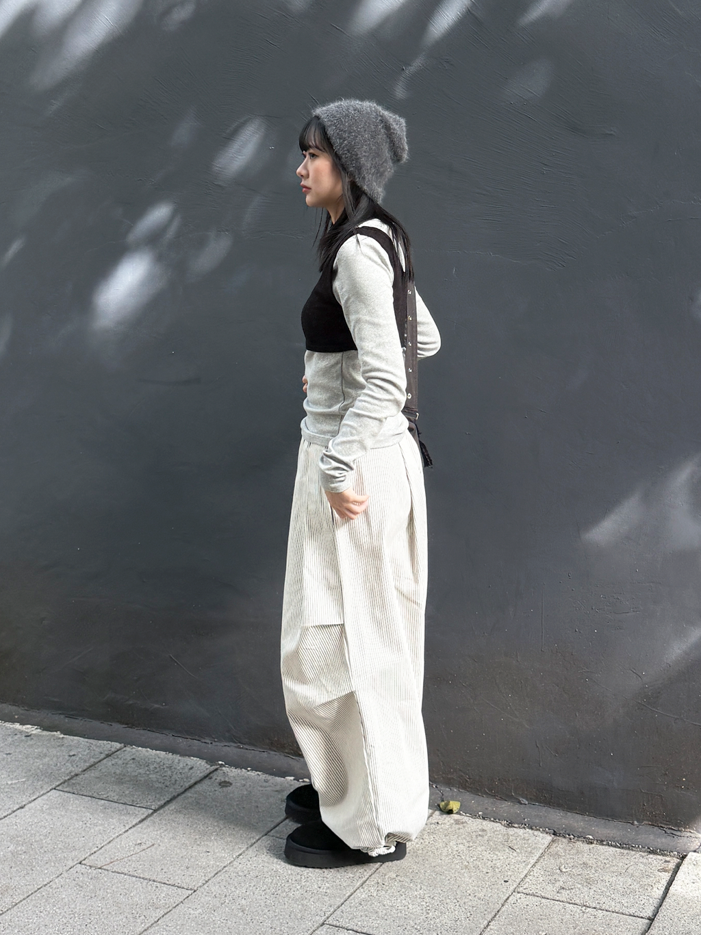 褶皺條紋寬版氣球褲(Unisex)