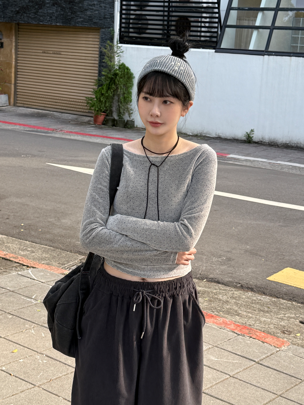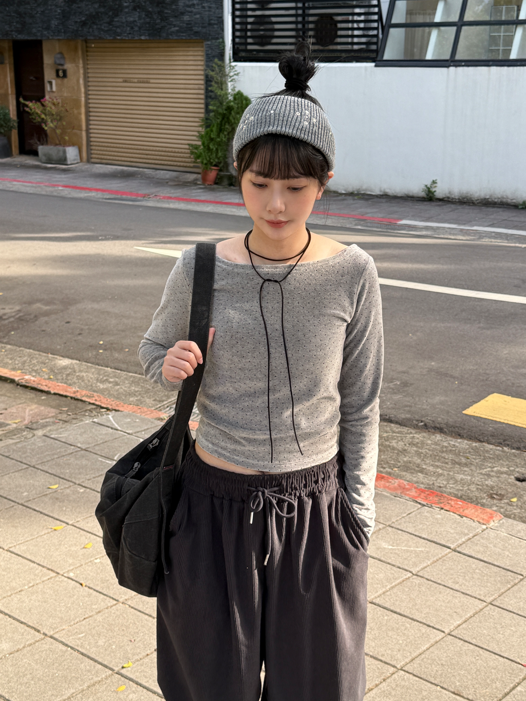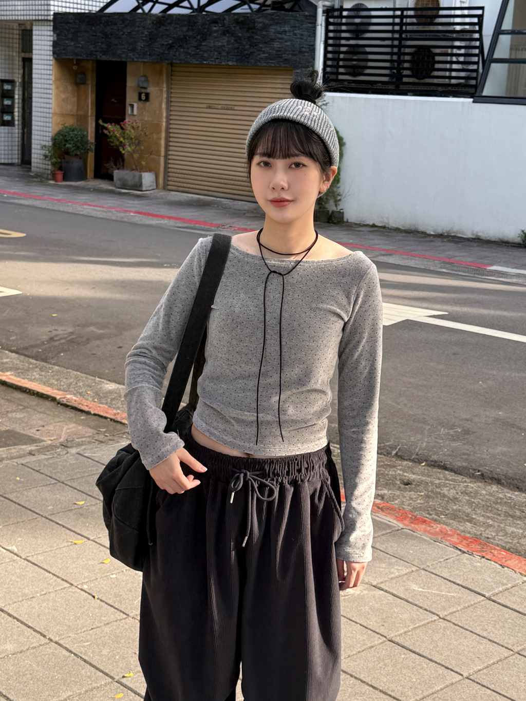 點點絨布船領上衣